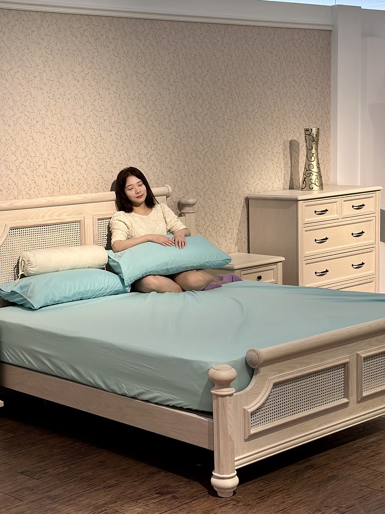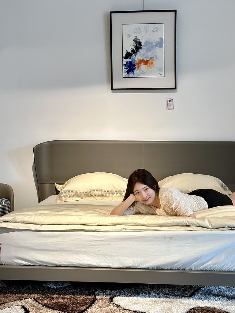 除了床墊 , 也有整套搭配好的床組、床架可供選擇 , 營造出家的溫馨氛圍感 , 真的有回到家的感覺 , 也讓我期待買回家具後妝點家的樣貌