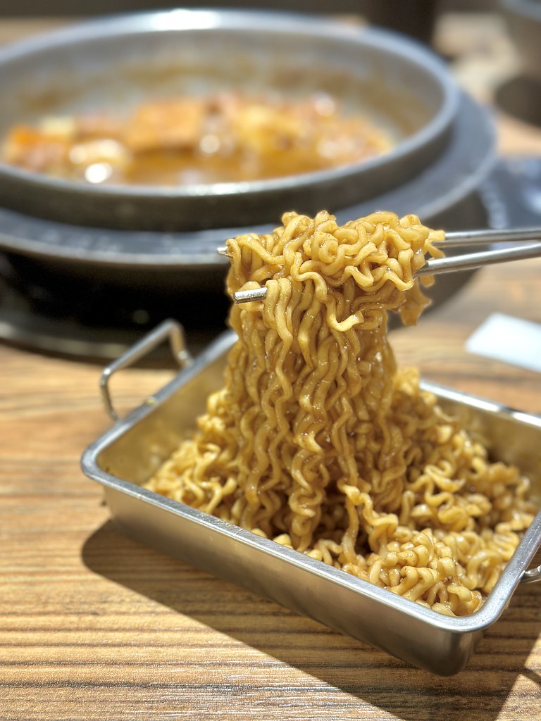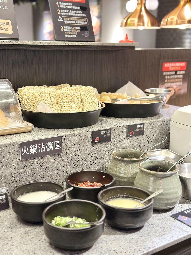 麵食有韓國冬粉、韓國寬冬粉、韓國泡麵 , 鍋底的醬汁配韓國泡麵有夠對味