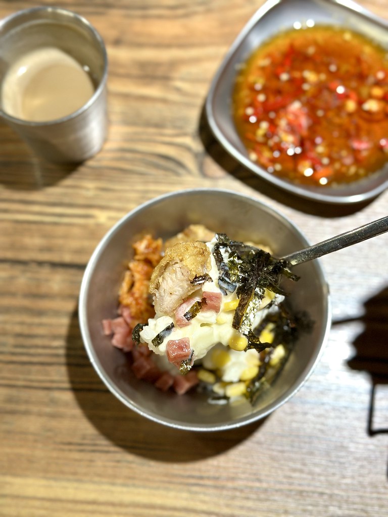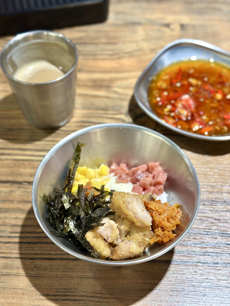 還可以自製炸雞奶油飯 , 什麼配料都來一點 , 色香味俱全