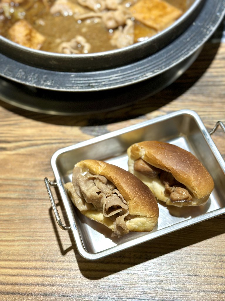 烤餐包夾入肉片或雞肉一起享用 , 是另一種滋味