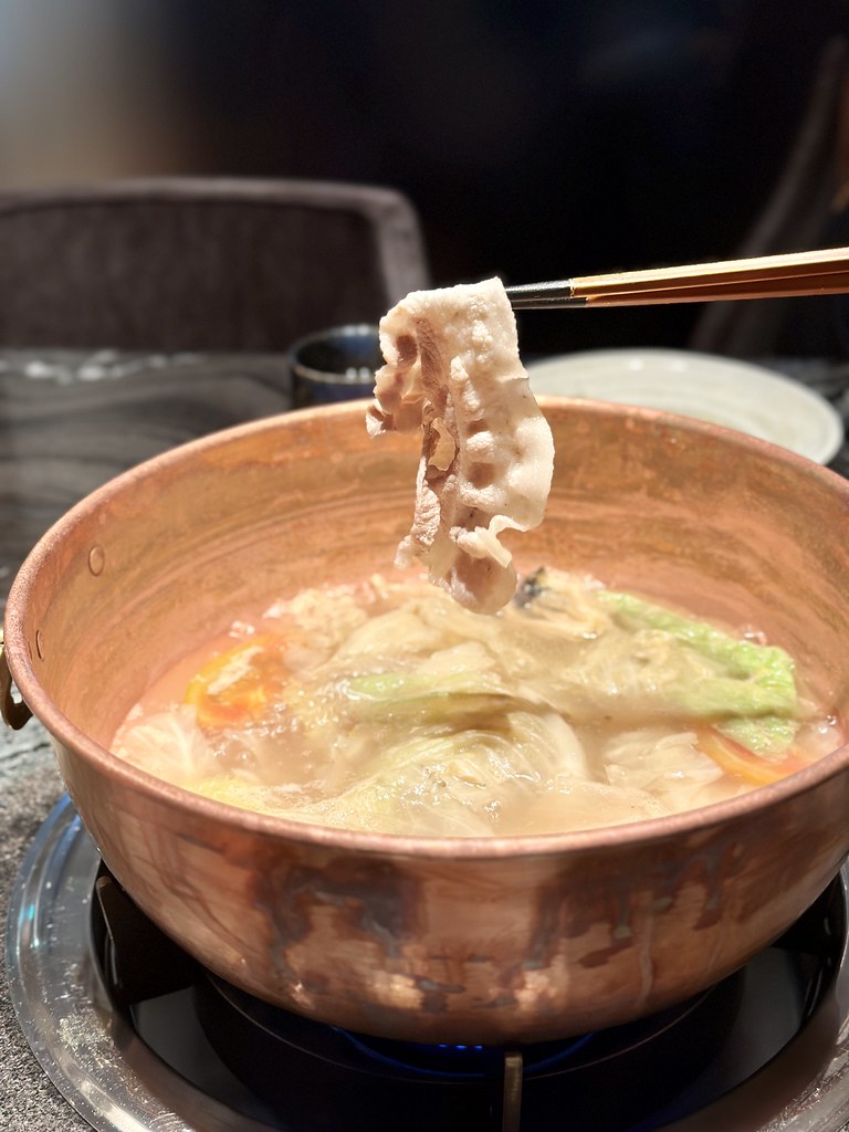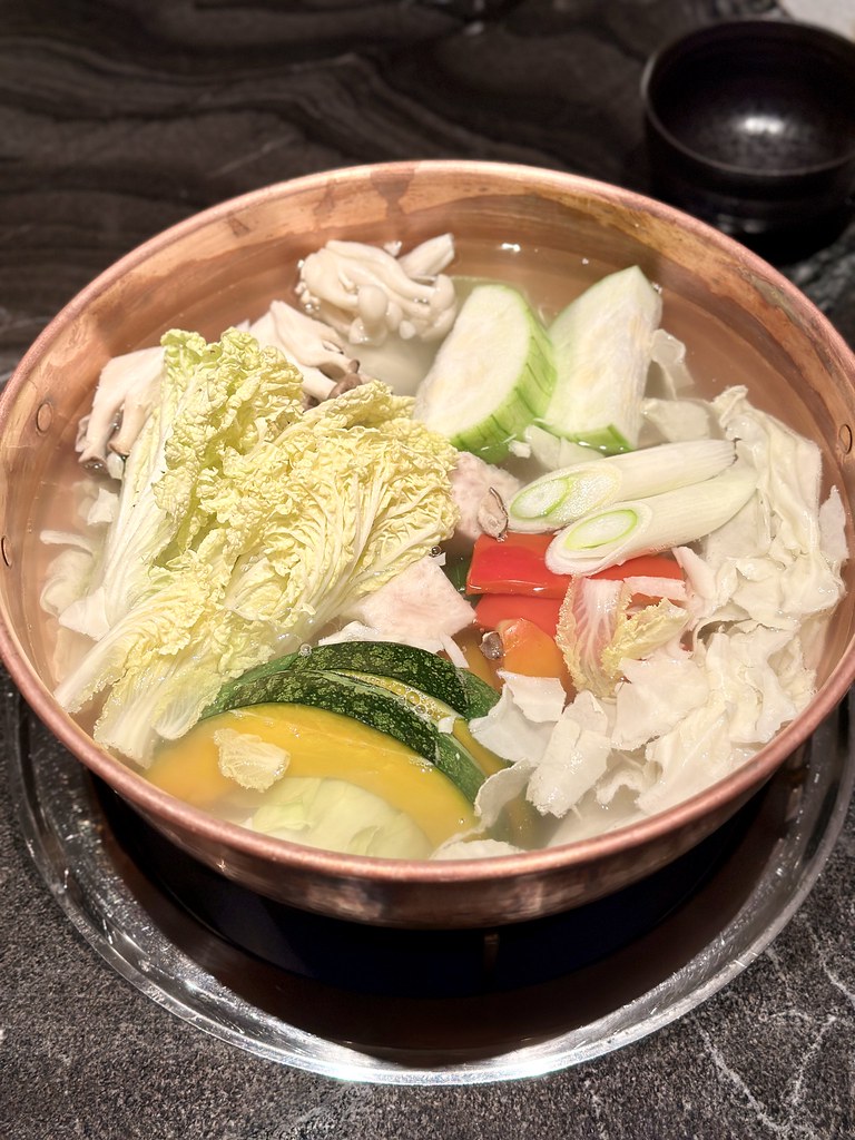 使用蔬菜、豬骨等食材熬煮的日式豚骨昆布湯非常清澈 , 是喝起來很純粹的湯頭