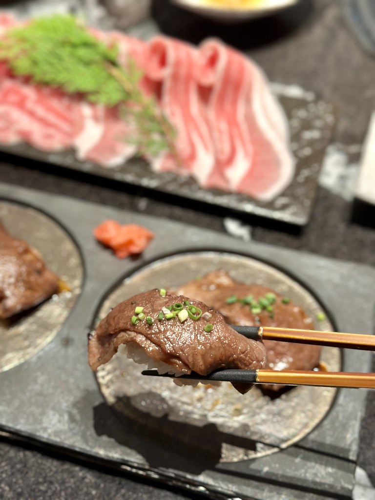超愛安格斯牛小排壽司 , 燒烤後的風味 , 入口後化開的美妙油脂 , 讓人著迷