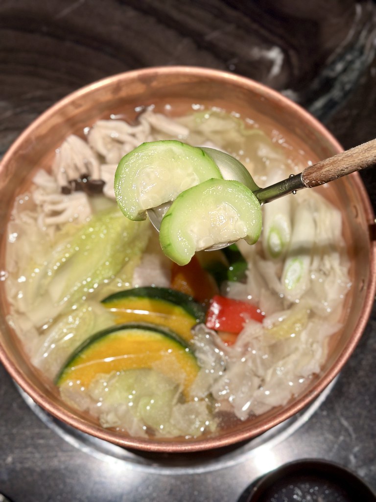 下鍋後會建議在剛好涮煮的時間撈起來 , 這樣能品嘗到各類時蔬的美味