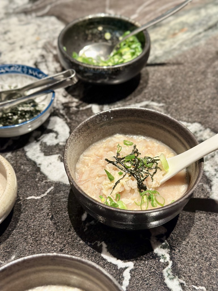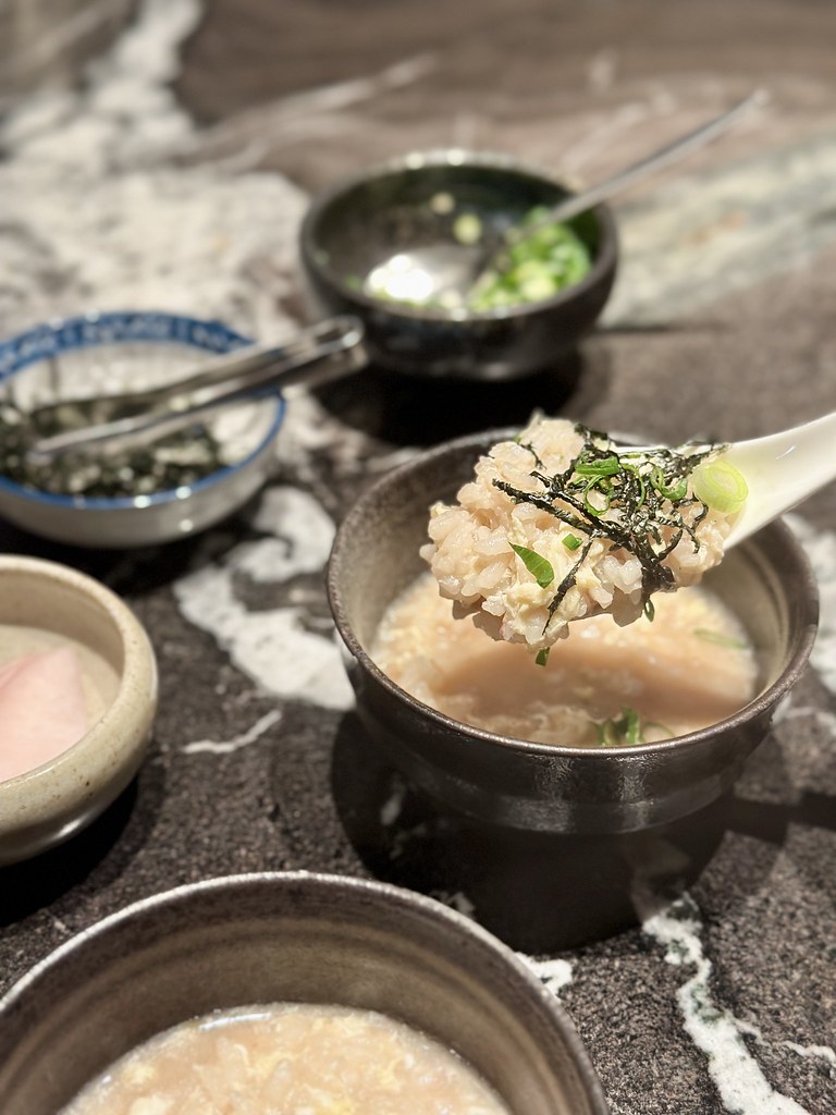 雜炊吸附了滿滿的湯頭精華 , 加入蛋液 , 湯頭更加鮮甜 , 吃完會很有飽足感