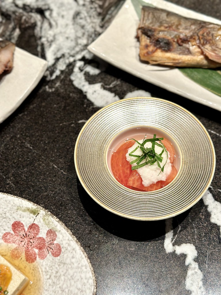 蕃茄山藥紫蘇沙拉 – 蕃茄搭配黏滑山藥 , 充滿創意 , 並融入獨特香氣的紫蘇 , 酸甜 ~ 好開胃