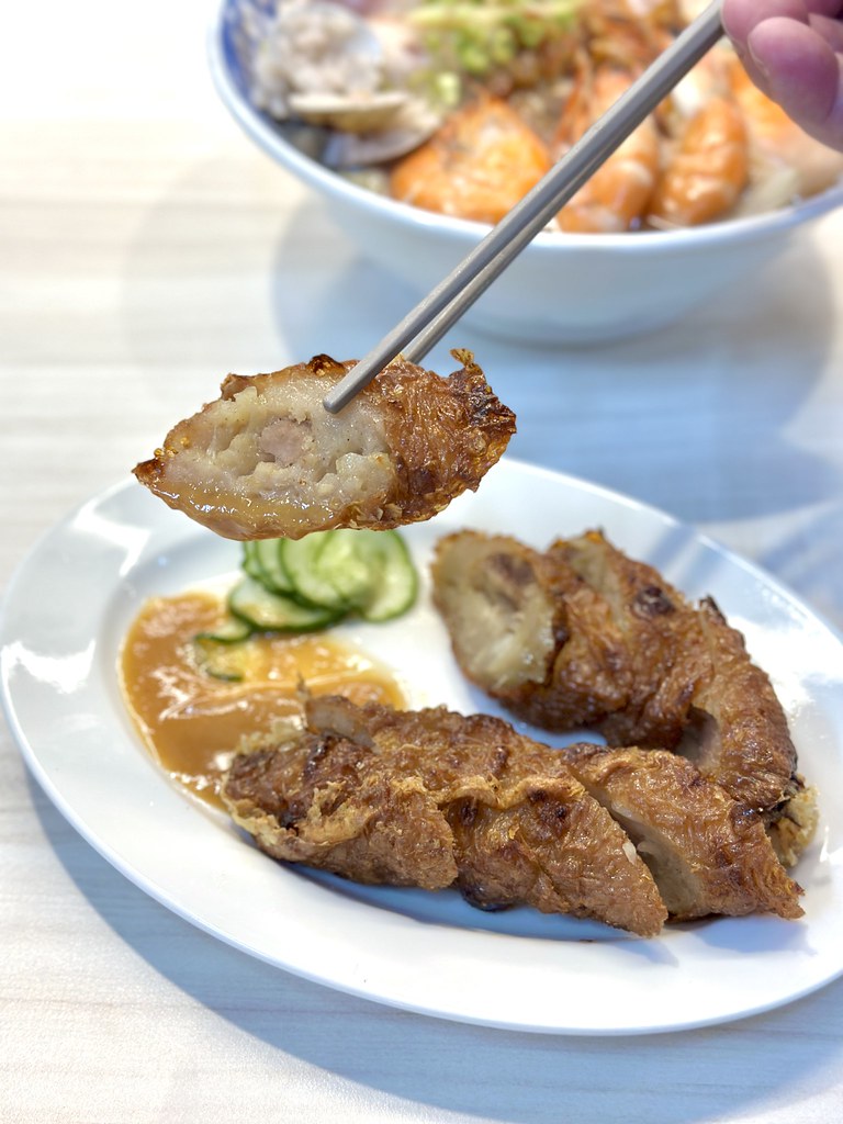 雞捲 – 酥嫩鹹香 , 搭配清爽的海鮮麵或粥 , 根本一絕
