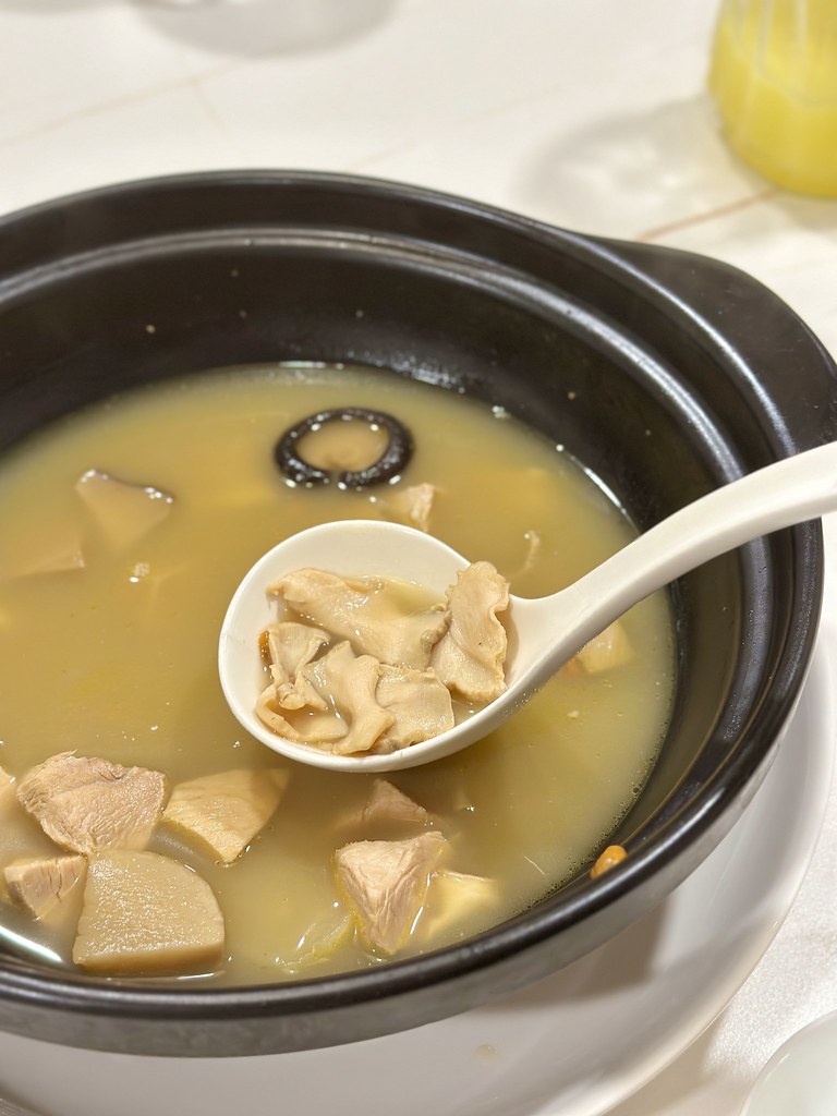 湯頭看著醇厚 , 喝起來卻清澈順口 , 又有舒爽的清甜蘊味 , 湯中料不少 , 彈牙緊緻的響螺肉是靈魂 , 豬腱厚實 , 是一鍋用料實在又超級好喝的燉湯