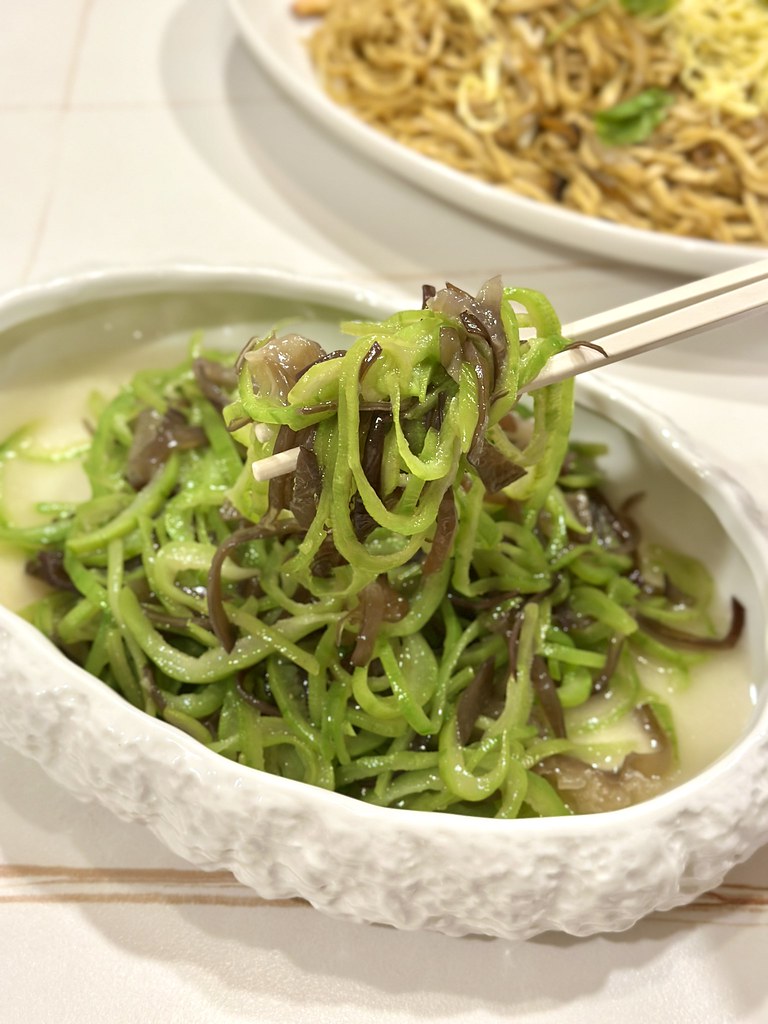 廣式清炒絲瓜 – 採用絲瓜鮮綠段清炒 , 加入木耳增添口感 , 有絲瓜的甜味與脆口 , 還有舒服的清爽感